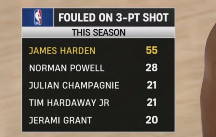 开云官网-本赛季三分被犯规数:哈登55次独一档 鲍威尔28次第二