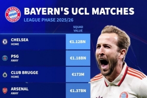 开云体育-拜仁欧冠对手身价:阿森纳13.7亿欧最高,巴黎&蓝军超11亿欧