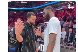 维金斯笑抱勇士多人勇士官推致敬:你永远是冠军!